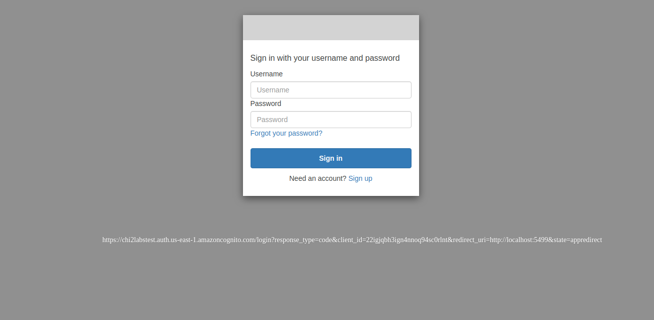 You will be redirect to Cognito Login Form , there you can create your account and log in.