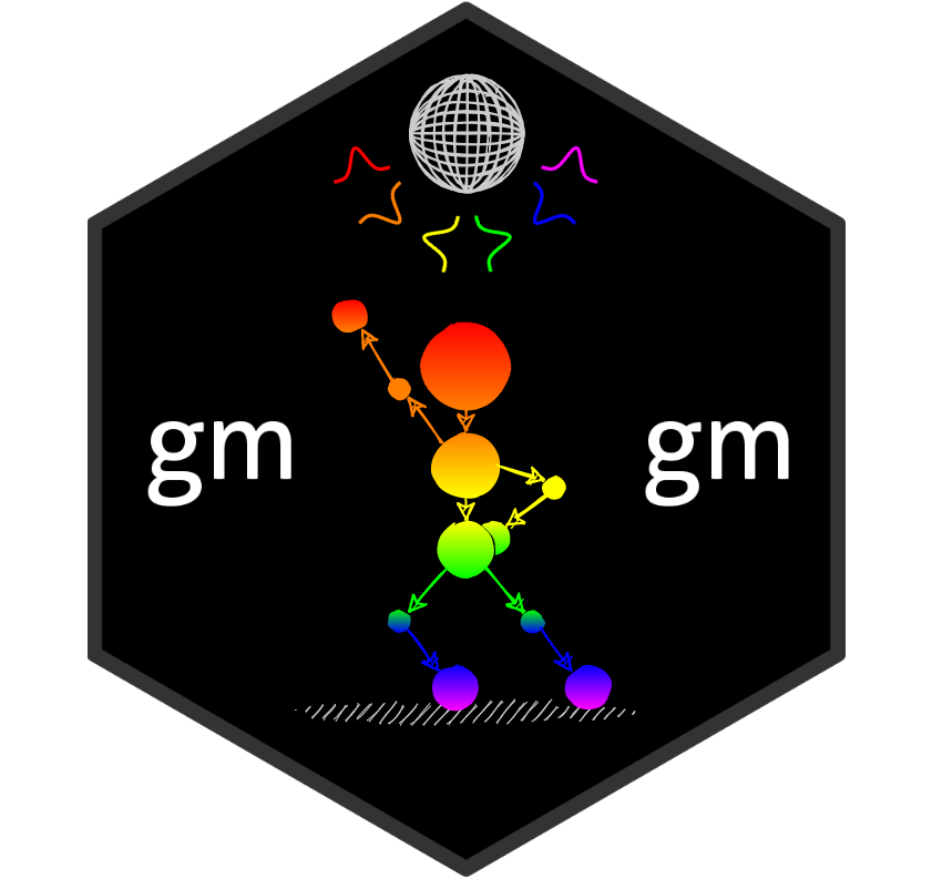 Gaussian mixture graphical models include Bayesian networks and dynamic Bayesian networks (their temporal extension) whose local probability distributions are described by Gaussian mixture models. They are powerful tools for graphically and quantitatively representing nonlinear dependencies between continuous variables. The R package gmgm provides a complete framework to create, manipulate, learn the structure and the parameters, and perform inference in these models.