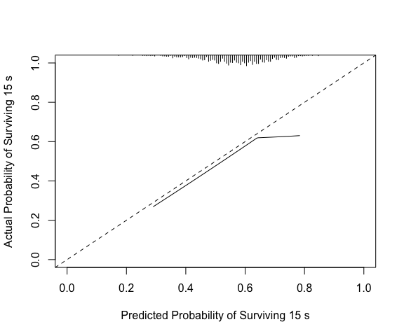#> Validation of Predicted Survival at Time= 15     n= 1000 , events= 1000