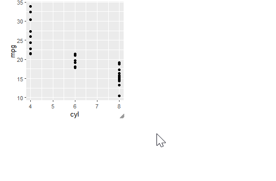 outputggplot(mtcars, aes(x = cyl, y = mpg)) + geom_point()